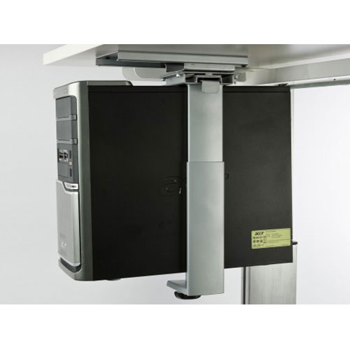 The CS29 is our most cost effective, steel clamp type model. It can be used fixed to the desk, or can be made even more versatile by enhancing its movement to 360 degree rotation with the additional slide and swivel plate. Keep your computer healthy and reduce dust in the components by fixing it underneath your desktop. No more damage or cluttered floor.