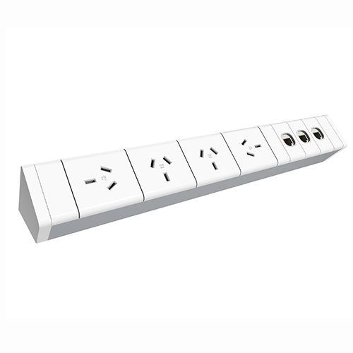 Our new Athena rail incorporating the latest slim line GPO facias. A stylish design solution for providing power and/or data to the workspace where it is easily accessible. This rail is also Category 6 compliant.