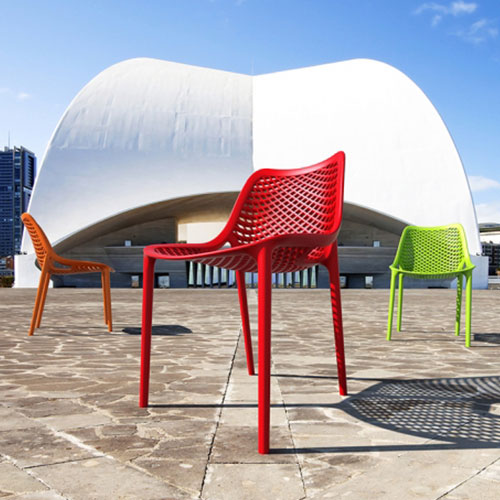 The Air Chair by Siesta is no ordinary plastic chair. It’s extraordinary strength is due to the entire chair being one-piece injection moulded polypropylene, the legs reinforced with glass fibre for even more stability. The plastic is packed with UV stabiliser, so this chair will not fade or go brittle even in the sunniest weather conditions. Siesta’s Air Chair is built to last in busy commercial venues, indoor or outdoor.