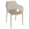 The Air XL Armhair by Siesta is no ordinary plastic chair. It’s extraordinary strength is due to the entire chair being one-piece injection moulded polypropylene, the legs reinforced with glass fibre for even more stability. The plastic is packed with UV stabiliser, so this chair will not fade or go brittle even in the sunniest weather conditions. Siesta’s Air XL Armchair is built to last in busy commercial venues, indoor or outdoor.