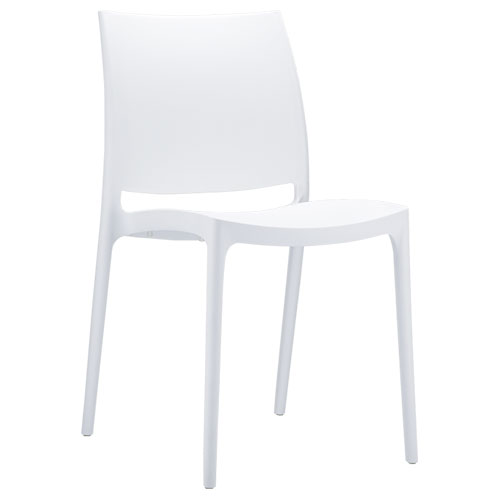 The Maya Chair is no ordinary plastic chair. It’s extraordinary strength is due to the entire chair being one-piece injection moulded thermoplastic, the legs reinforced with glass fibre for even more stability. The plastic is packed with UV stabiliser, so this chair will not fade or go brittle even in the sunniest weather conditions. The Maya Chair has a CATAS Certificate (complies to European commercial standards). Don’t get Siesta’s Maya Chair confused with other ‘Maya’ versions on the market, this one is the only one built to last in busy commercial venues, indoor or outdoor.