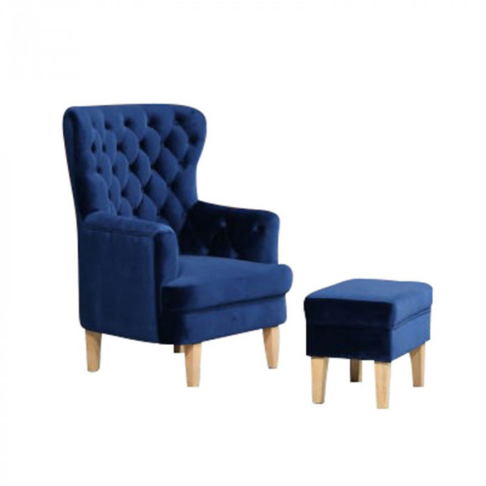 Upholstered in Velvet with Blonde Timber Legs, the Lisa Chair is a beautiful and classic match for any room. A matching foot stool is available.