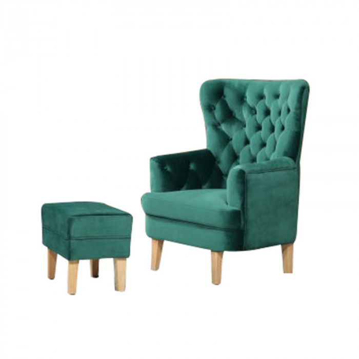 A comfortable foot-stool upholstered in Velvet with Blonde Timber Legs. A classic, beautiful match for any living room.