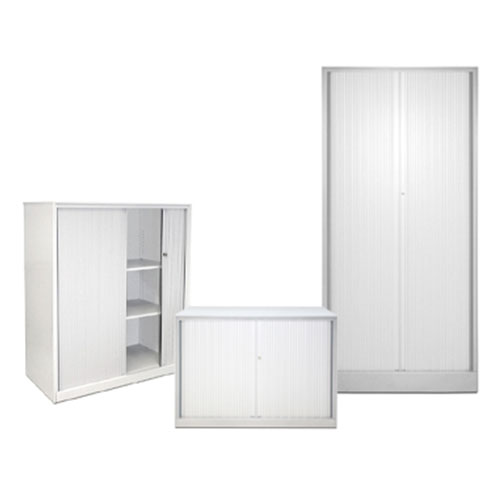 Tambour cabinets are ideal for office storage needs. Available in four height options & 2 width Options these cabinet’s retractable doors and adjustable shelf heights will allow you to store a variety of office goods. These lockable cabinets are ideal for workstations, confined spaces, narrow corridors and an array of office environments.