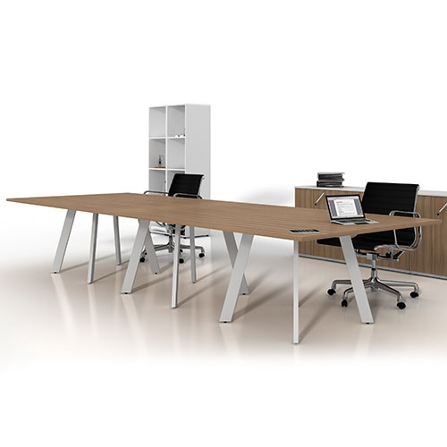An elegant minimalistic functional and unique table system with rectangular tube sections robot welded in multiple angles to showcase a distinctive eye catching collection that complements today’s modern collaborative workspace. Available in white, black or custom colour legs,various top styles and finishes and in desk power boxes with all the modern electronic attachments.