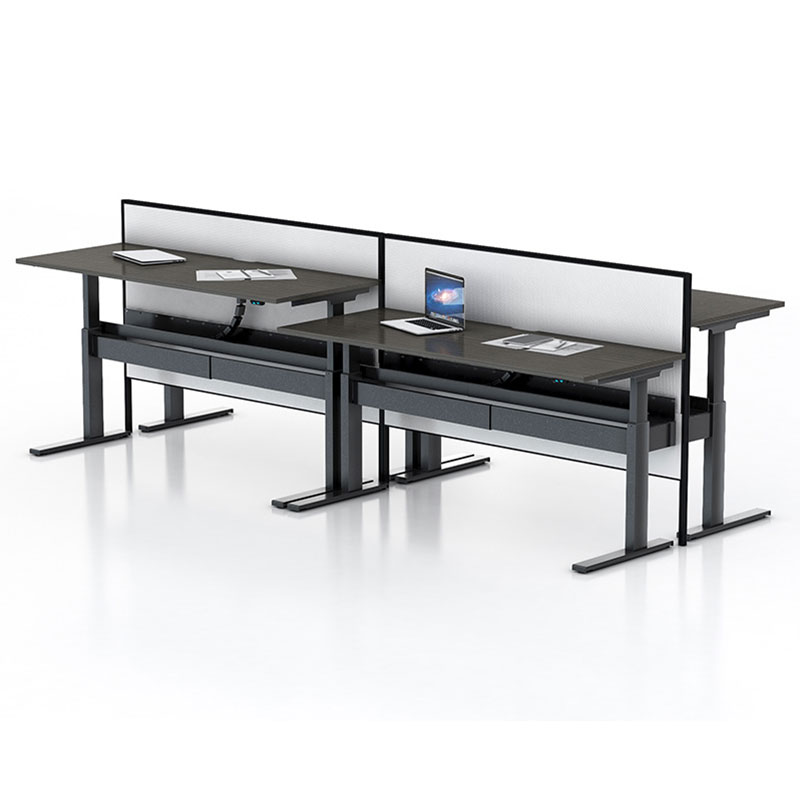 Gen-H is an electric lift height adjustable desk system that allows you to move from a sitting to standing work desk at the touch of a button.
