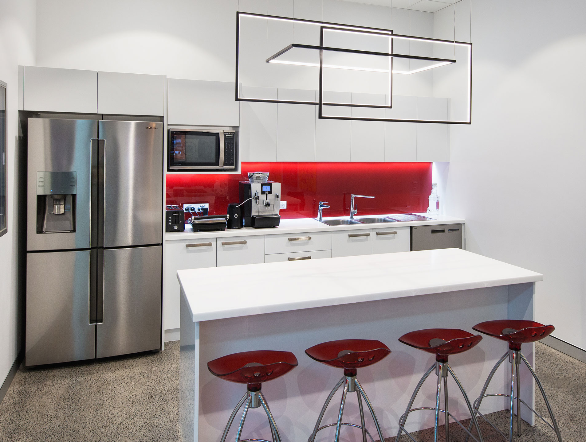 Following an office refurbishment to their Sydney office, SB Office Furniture supplied and installed the staff kitchen, furniture for the open plan work areas, breakout rooms, offices and a staff kitchen. This included workstations and chairs, soft furnishings, dining and coffee tables, chairs and stools.