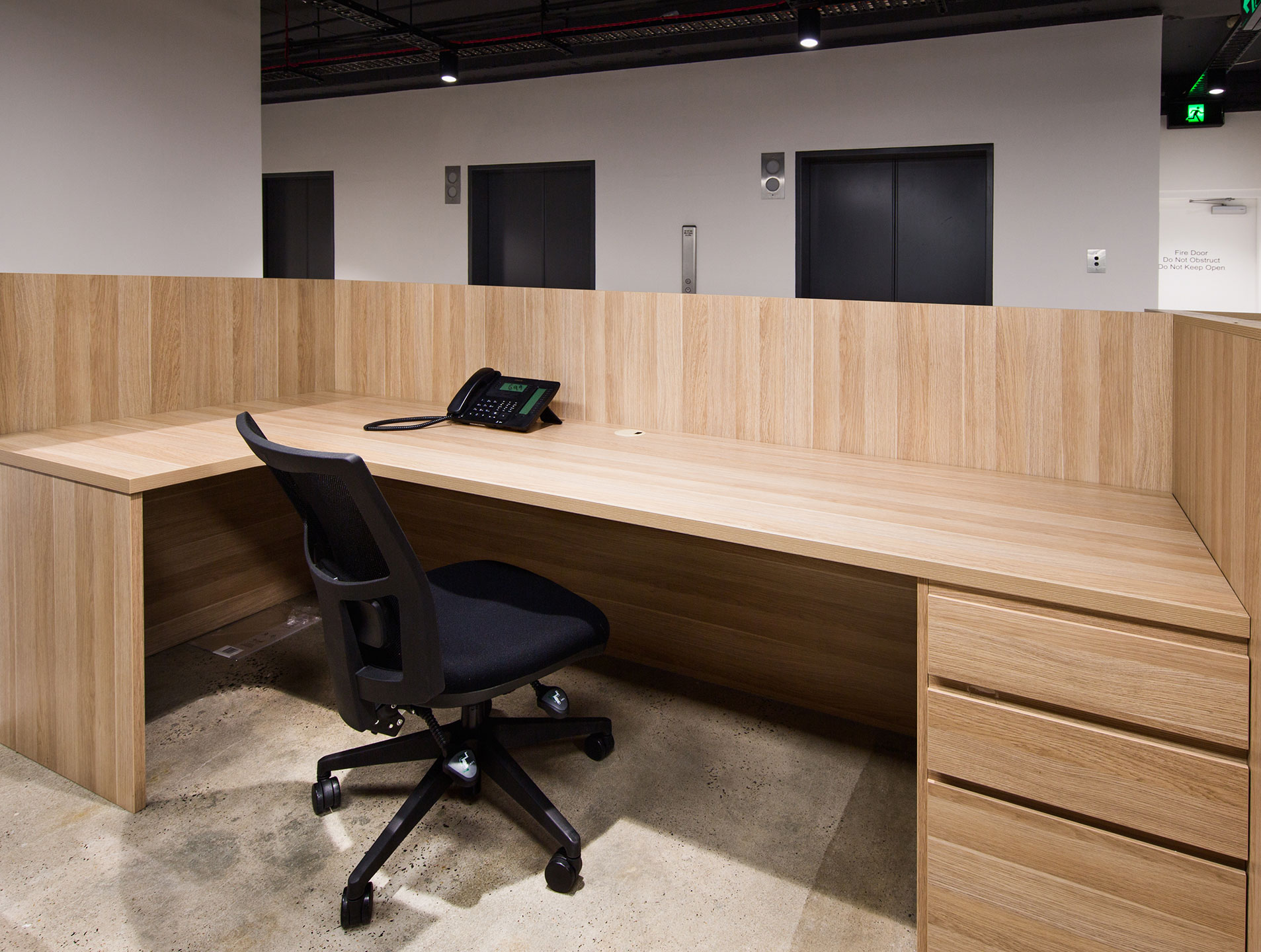 Joinery items delivered and installed included a new full kitchen, reception desk, and print stations were installed on site to compliment the final design.